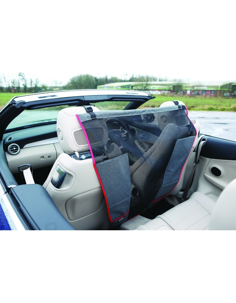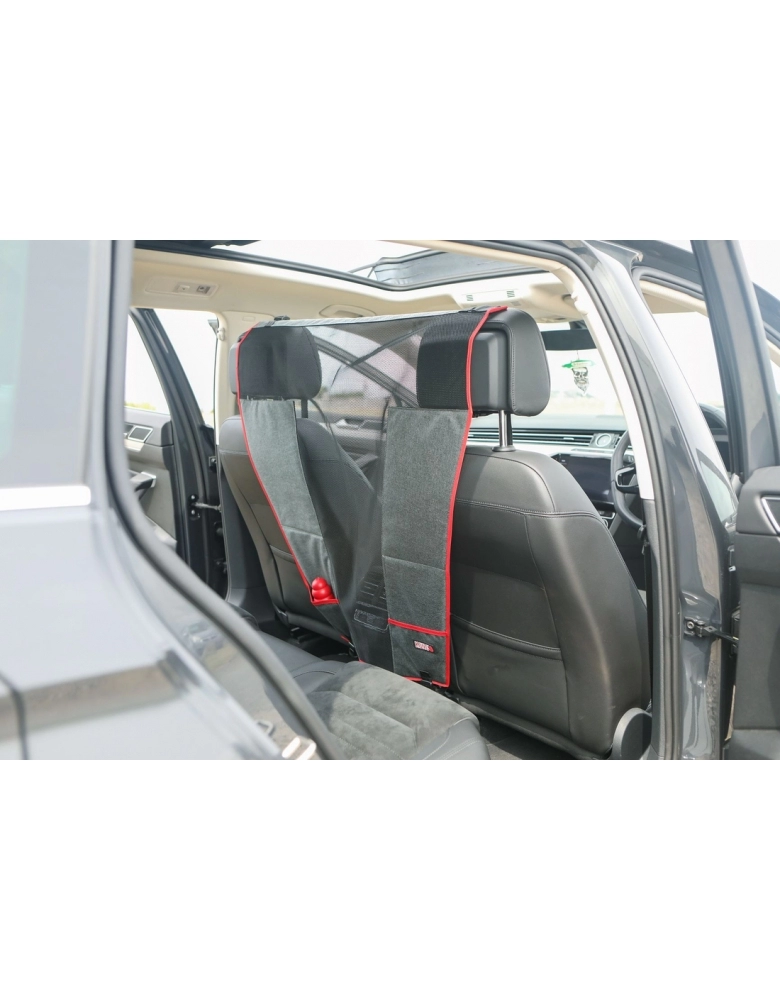Este produto é desenvolvido e fabricado sob os mais altos padrões de exigência e qualidade. É um acessório perfeito para uma viagem de carro com seu pet. É uma barreira de alta qualidade que protege você e seu cão. Construção com material confortável e que proporciona ventilação. Alças ajustáveis que se adaptam à maioria dos veículos. Contém bolsas para a colocação de brinquedos e petiscos. A tela permite que o cão mantenha contato visual com seus tutores, o que transmite segurança e tranquilidade durante a viagem. Modo de usar: Prenda as 4 alças ajustáveis aos encostos de cabeça dos assentos e na parte inferior dos mesmos. Use sempre juntamente com cinto de segurança para cães. Material: Tecidos, plásticos e metal.