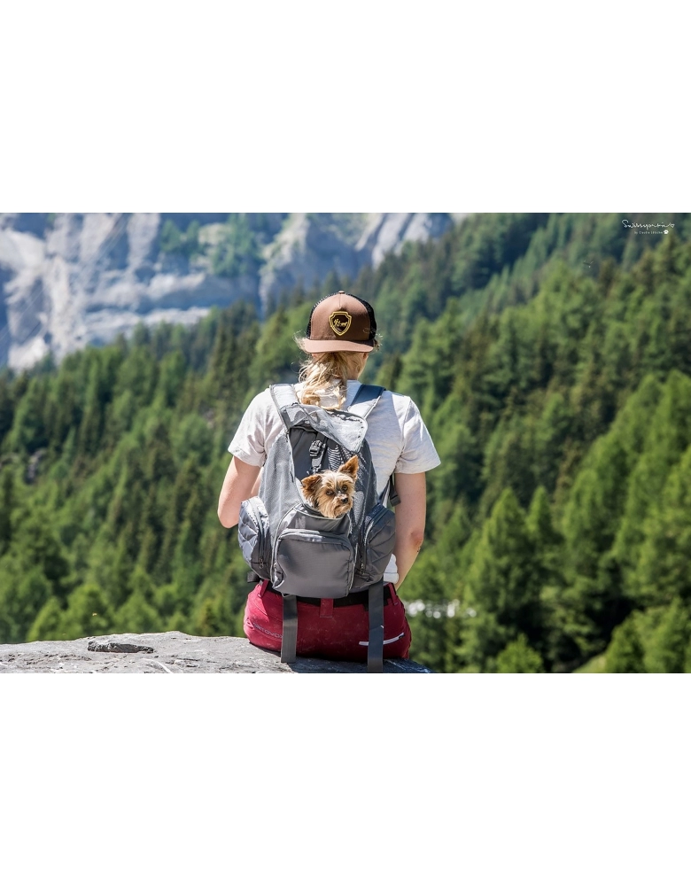 Esta mochila é feita com tiras de malha bem recheadas para conforto enquanto você a carrega. Possui um fundo removível e acolchoado para maior conforto do cão. Feito com teido resistente à água, macio e durável. Possui um cinto de segurança com zíper no topo para aumentar a segurança. Possui laterais teladas para aumentar a ventilação. Possui uma frente espaçosa e laterais com bolsos para você guardar os itens essenciais. Linhas refletivas para aumentar a visibilidade e segurança noturna.